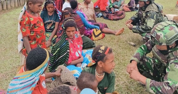Warga Kampung Andugume pun terlihat terbuka dan antusias dalam berinteraksi. Suasana penuh kepercayaan ini menunjukkan bahwa kehadiran Satgas tidak hanya sebagai penjaga keamanan, tetapi juga sebagai bagian dari kehidupan sosial masyarakat.